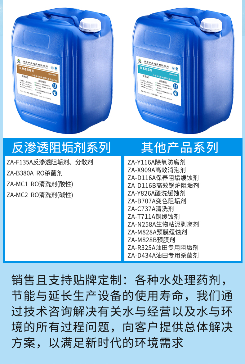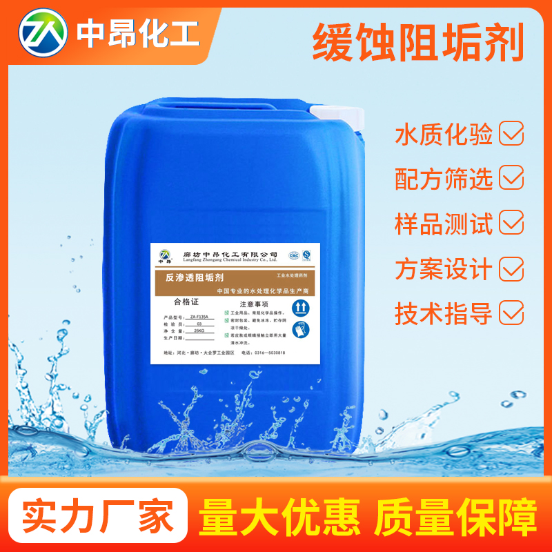 ZA-F135A是用于反滲透系統(tǒng)的專用阻垢劑,能有效的控制無機(jī)鹽垢在膜表面的沉積。